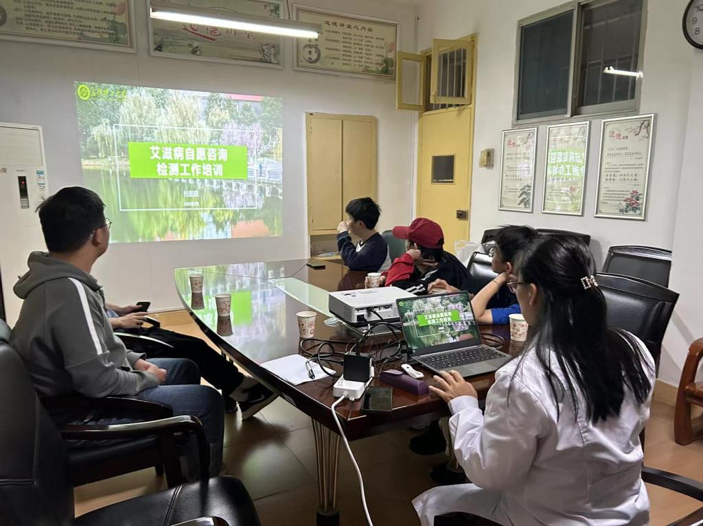 为了做好taptap点点大学生艾滋病自愿咨询检测工作,2024年3月29日晚卫健办对两校区艾滋病自愿咨询检测工作学生志愿者们进行了培训。