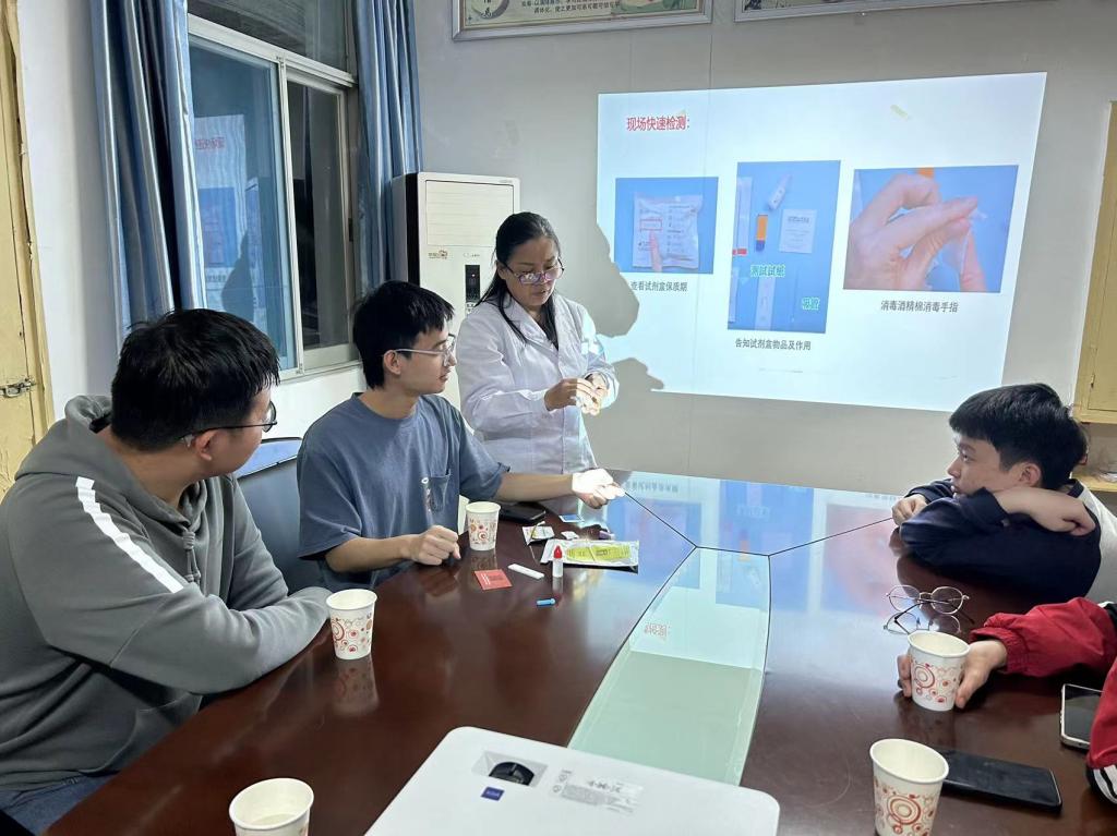 会上,雷鹂主任为志愿者们详细讲述了艾滋病自愿咨询检测工作的内容、原则、流程和要求,强调了保密原则的重要性和市疾控确证试验、市第一医院暴露后预防用药两个重要的转介机构,着重演示了自主指尖血检测的过程及注意事项,并为新加入的志愿者温习巩固了艾滋病防控相关知识。