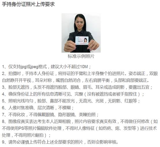 2.本人手持身份证(正面)照片。其中,头部不得遮挡,五官清晰可见,身份证件信息完整可见。
