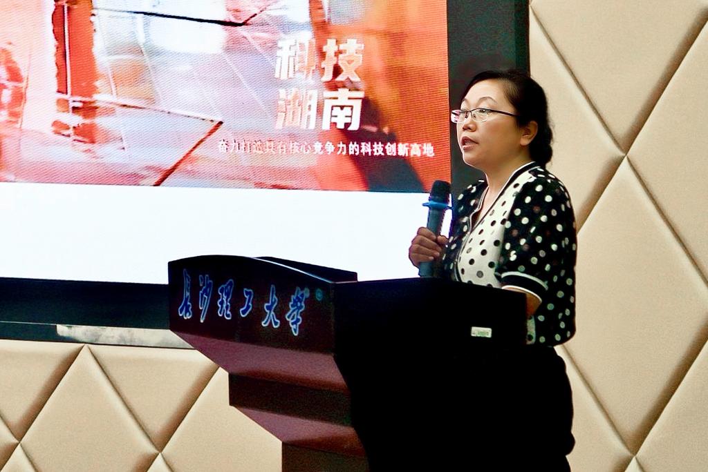 湖南省科学技术厅厅长朱皖向广大学子分享自己的三点深刻感受,他呼吁学生应该要弘扬科学家精神,为实现科技自立自强筑基铸魂;维护科研诚信,共同营造良好科研生态;点亮青春理想,让科学家精神代代相传。