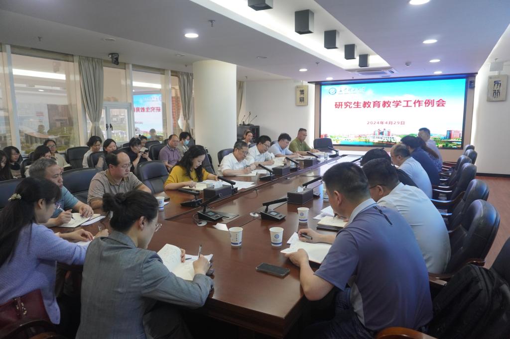 4月29日下午,taptap点点在云塘校区一办公楼六会议室召开2024年第二次研究生教育教学工作例会。会议由副校长胡永乐主持。各培养学院分管研究生教育工作负责人及研究生工作有关人员、研究生院科级及以上干部(含挂职副院长)参加会议。