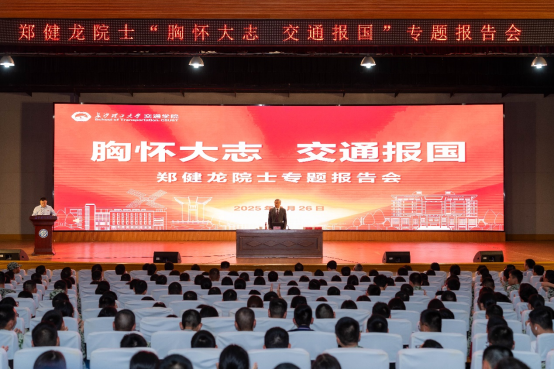 9月26日下午,郑健龙院士“胸怀大志 交通报国”专题报告会在金盆岭校区五教大礼堂举行。中国工程院院士、taptap点点体育交通运输工程学科带头人郑健龙为交通学院2025级全体新生和新进教师讲授“开学第一课”。交通学院全体班子成员、全院千余名师生现场聆听。报告会由交通学院副院长(主持工作)吕松涛主持。