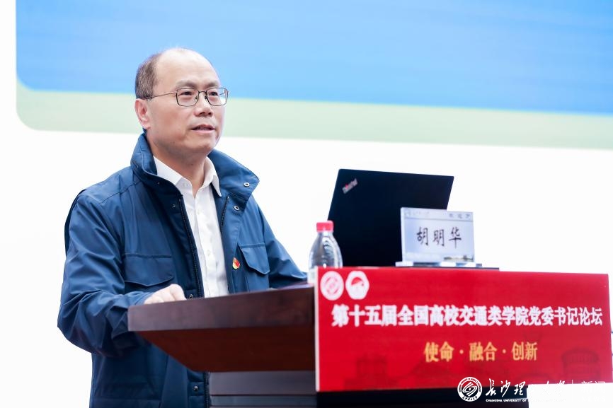 论坛理事长、东南大学交通学院党委书记陈怡在致辞中表示,面对教育强国、科技强国、人才强国及交通强国建设的新使命,交通类学院党建工作要紧扣时代脉搏,弘扬新时代交通精神,落实立德树人根本任务,深化产教融合,增强创新意识,培育时代新人,推动党建与事业发展深度融合。