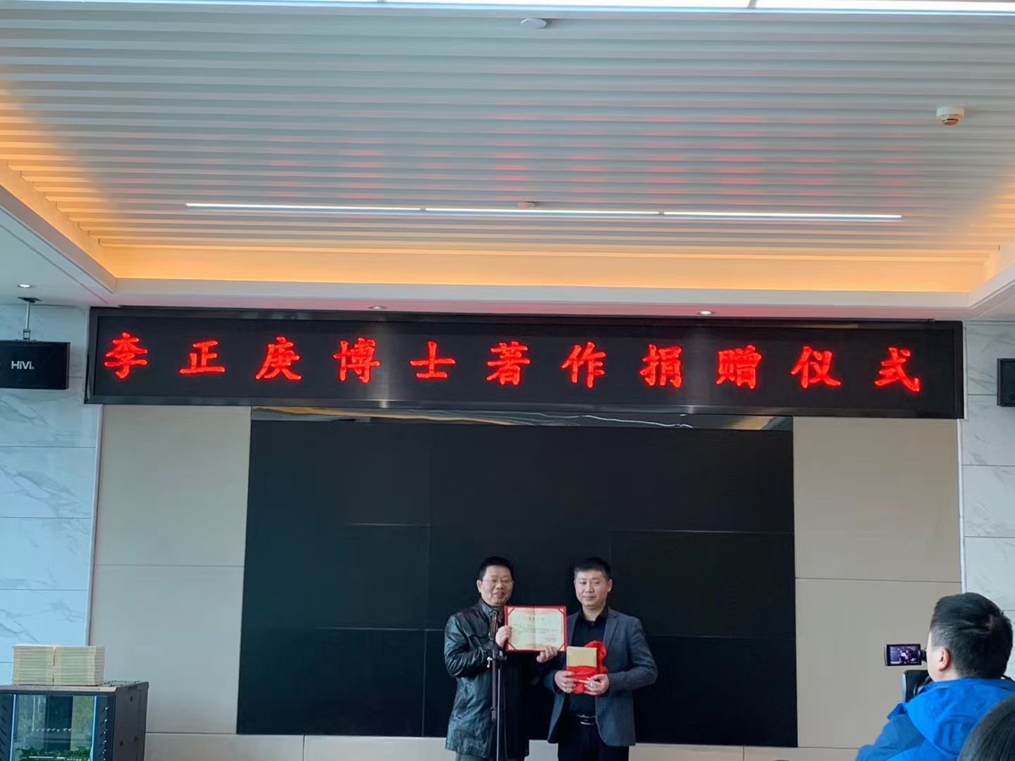 捐赠仪式上,湘阴县图书馆负责人代表县图书馆接受了李正庚老师的捐赠,并为其颁发了捐赠证书。