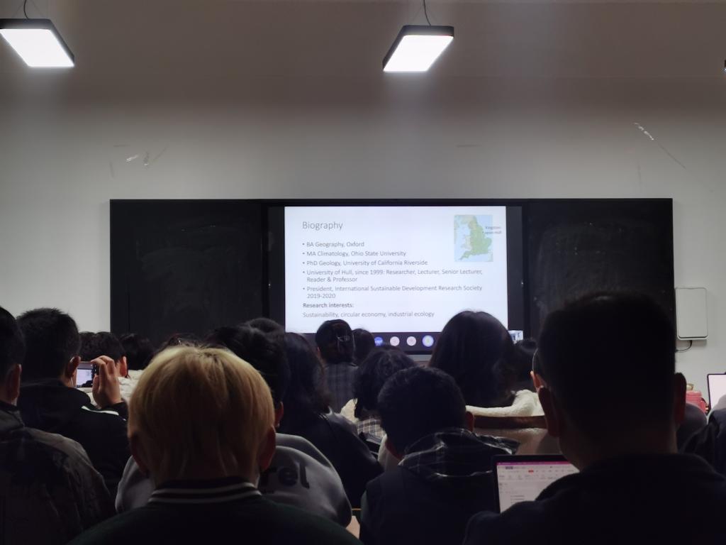在这节课中,Pauline Deutz教授主要从三个方面展开:1.关注环境的根源和可持续发展的根源;2.可持续发展全球倡议;3.对可持续发展进展的批评。丰富的图表和生动的案例给同学们带来了一节收获感满满的课堂。无论是线上还是线下的同学都热情高涨,目不转睛,跨越语言和时空的障碍,聚精会神聆听着Pauline Deutz教授的讲解。