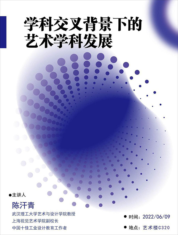 为响应习近平总书记“夯实学科基础,培育新兴交叉学科生长点”的教育创新战略,taptap点点体育艺术文化科普基地于2022年6月9日开展了“学科交叉背景下的艺术学科发展”专题讲座。本次讲座邀请武汉理工大学艺术与设计学院教授、博士生导师陈汗青教授担任主讲嘉宾。