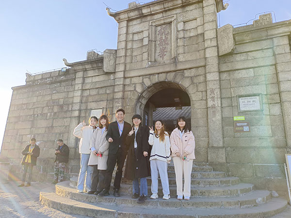 次日,在南岳文旅局工作人员的带领下,老师和同学们一起游览了包括南岳大庙、福严寺、磨镜台、祝融峰等标志性景点。其中,南岳大庙始建于隋代,是一座集国家祭祀、民间朝圣、道教宫观、佛教寺院于一体的宫殿式古建筑群,是南方最大的传统文化博物馆和艺术殿堂。它佛道共存的特殊格局给人留下了深刻印象,东有道八观,西有佛八寺,也是儒、释、道三教并存的典范。除此之外福严寺的千年银杏和禅宗文化、祝融峰的山巅云海也让同学们流连忘返,纷纷拍照记录,作为后续研究的宝贵资料。
