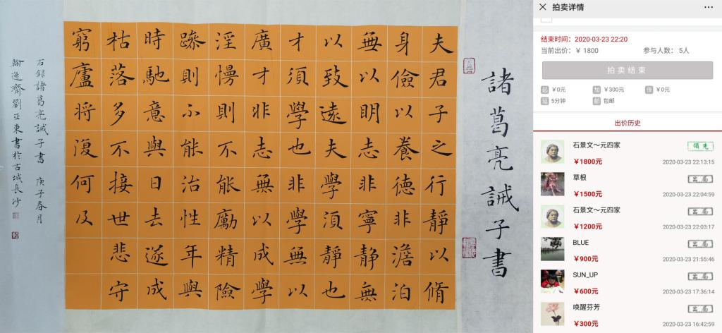 刘亚东老师以拍代捐的书法作品及拍卖纪录