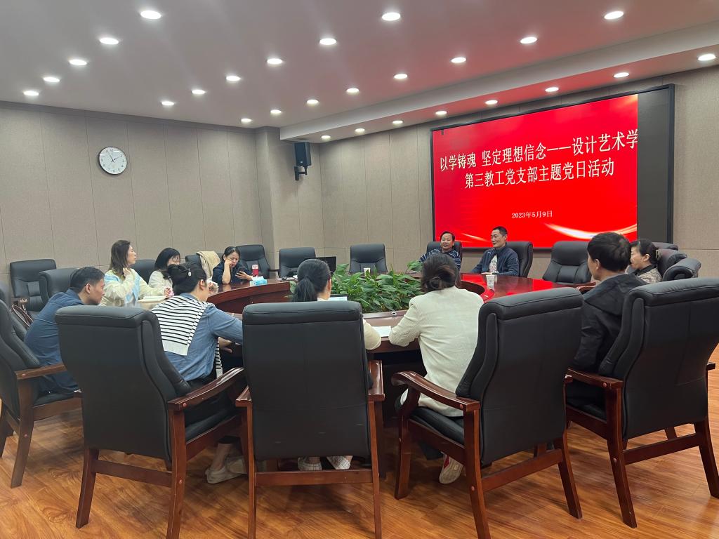 5月9日下午,设计艺术学院教工第一、二、三党支部分别在艺术楼C301、C317和C320开展了“以学铸魂,坚定理想信念”主题党日活动。支部书记严海岸、文卫民、陈书芳主持,全体党员参加。