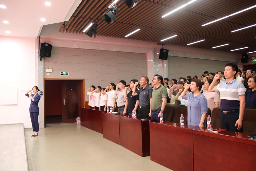 在庄严肃穆的氛围中,全体与会党员在郭剑的带领下,面向鲜红的党旗,重温入党誓词。铿锵有力的誓言回荡在会场,表达了对党的无限忠诚和为共产主义奋斗终身的坚定信念。