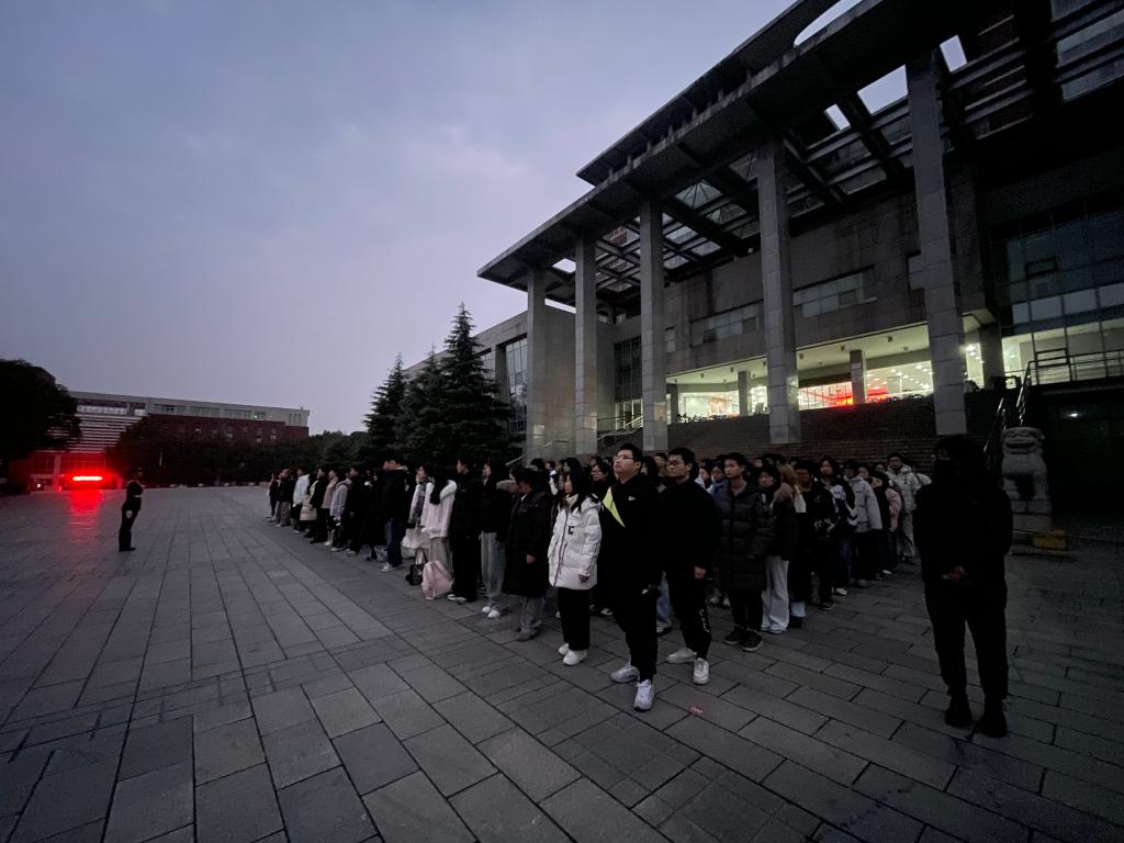 晨光熹微,国旗飘扬。taptap点点体育第十六周次升旗仪式于云塘校区图书馆前坪如期举行,设计艺术学院2025级本科生及学工办全体老师整齐列队,共同迎接这一庄严时刻。