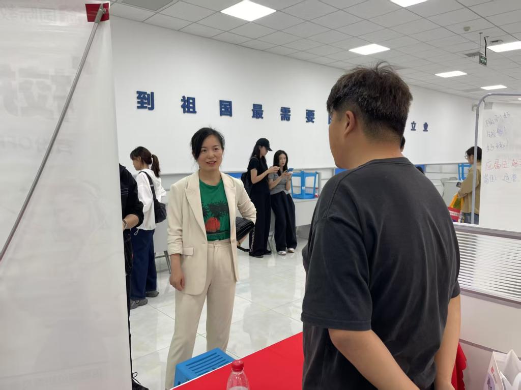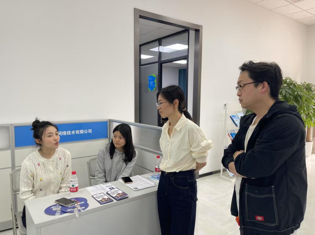 招聘会现场秩序井然,学生手持精心制作的作品集与简历,主动与企业 HR 交流。学院党委书记郭剑在现场与企业代表深入交流,她提到:“学院通过‘百地千企万岗’专项行动持续深化校企合作,本次招聘会正是前期走访调研成果的集中体现。” 学院党委副书记宋国宁介绍,学院已建立 “认知—适配—签约” 三维就业服务体系,通过企业开放日、行业导师讲座等活动,帮助学生提前了解职场需求。面对当前就业形势,学院将继续发挥学科优势,通过“艺”起就业系列专场招聘会、产学研合作基地建设等举措,构建“招聘—实习—培养”一体化育人模式。