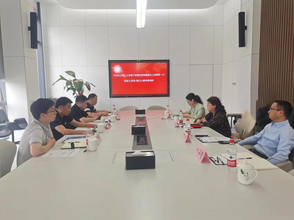 在岳麓山国家大学科技园科技服务有限公司,大科园公司总经理吴勤、副总经理李凌荣介绍了落实学校成果转化过程中园区资源匹配、法律咨询服务、搭建共享平台等方面的情况。双方就企业发展过程中存在的痛点难点问题展开深入探讨,共同探寻难题化解之道。