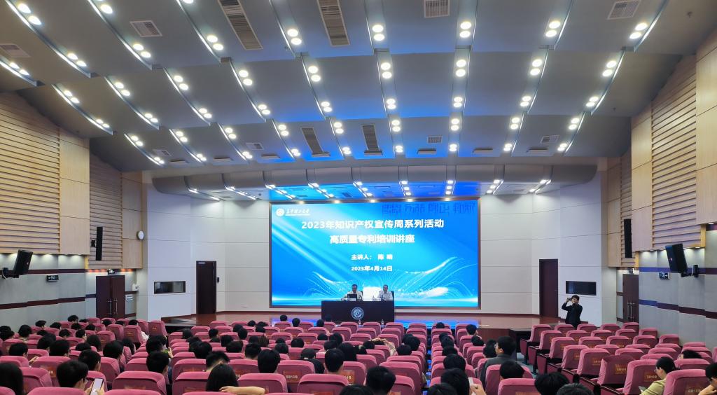4月14日上午,2023年全国知识产权宣传周系列活动——高质量专利撰写培训讲座在云塘校区图书馆报告厅举行。国家知识产权局专利局审查协作湖北中心工作站陈响副研究员受邀来校作专题讲座,各学院师生代表共200余人参加讲座。讲座由科技成果转移转化中心(知识产权中心)副主任刘亚辉主持。