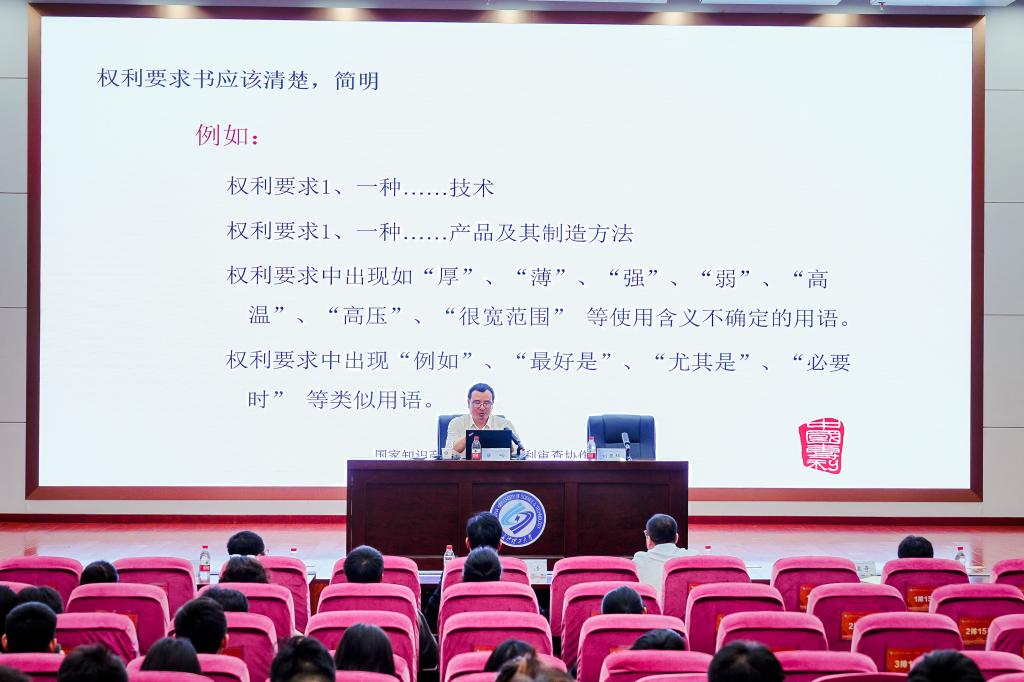 陈响以“高质量专利撰写”为题作专题培训讲座。首先他以高质量专利和高价值专利专利的内涵入题,明确了只有更多高质量专利才能产出更多高价值的专利。其次,他详细介绍了高质量专利的撰写要求、高质量专利的撰写过程,特别提出进行专利申请前的检索评估非常有必要,只有厘清发明技术方案与现有技术的区别,才能更好地撰写出高质量专利。最后,他结合实例从专利文本的五个部分逐一讲解专利文本的撰写要求及过程等。