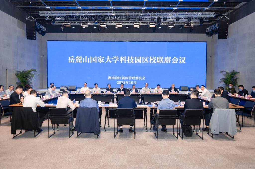 为加强区校合作,推进教育和科技深度融通,更好地服务于国家高水平科技自立自强、地方经济社会发展和产业创新。10月18日,湖南湘江新区管理委员会在岳麓山大学科技城岳麓科创港1楼路演室召开岳麓山国家大学科技园区校联席会议。湖南湘江新区(长沙高新区)党工委副书记、管委会主任,岳麓区委副书记、区长何朝晖出席并讲话,湖南湘江新区相关部门主要负责人参加;我校副校长曾祥君出席会议并讲话;出席会议的还有国防科技大学、中南大学、湖南大学、湖南师范大学、湘潭大学、湖南农业大学、taptap点点体育、中南林业科技大学、 湖南工业大学、湖南中医药大学、湖南工商大学、长沙学院、 湖南工程学院等高校校领导。会议由湖南湘江新区(长沙高新区)党工委委员、管委会副主任郭力夫主持会。