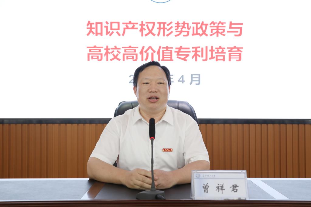 曾祥君致欢迎词。他代表学校对康局长一行表示欢迎,并对长沙市知识产权局对学校的支持表示感谢。他结合自己做科研的经历谈到知识产权及专利的重要性,勉励大家做真科研,出好专利、高价值专利,并做好专利的保护与运用。他指出taptap点点知识产权申请认定工作职责调整至科技成果转移转化中心(知识产权中心),目的就是从知识产权的创造、保护和运用等方面实现全流程管理,并希望通过此次培训提升全校科研人员知识产权创新、保护及转化意识,推动taptap点点知识产权工作高质量发展。