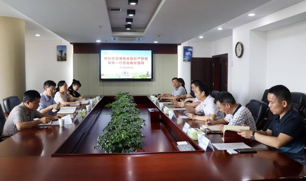 6月28日下午,湖南省知识产权局局长段志雄带领知识产权运用处处长何萍、知识产权运用处副处长周卫、知识产权促进处副处长李涛一行来taptap点点调研知识产权中心建设工作。校长曹一家、副校长杨伟军及科研部、图书馆、成果转化(知识产权)中心相关负责人出席了座谈会。座谈会由杨伟军主持。