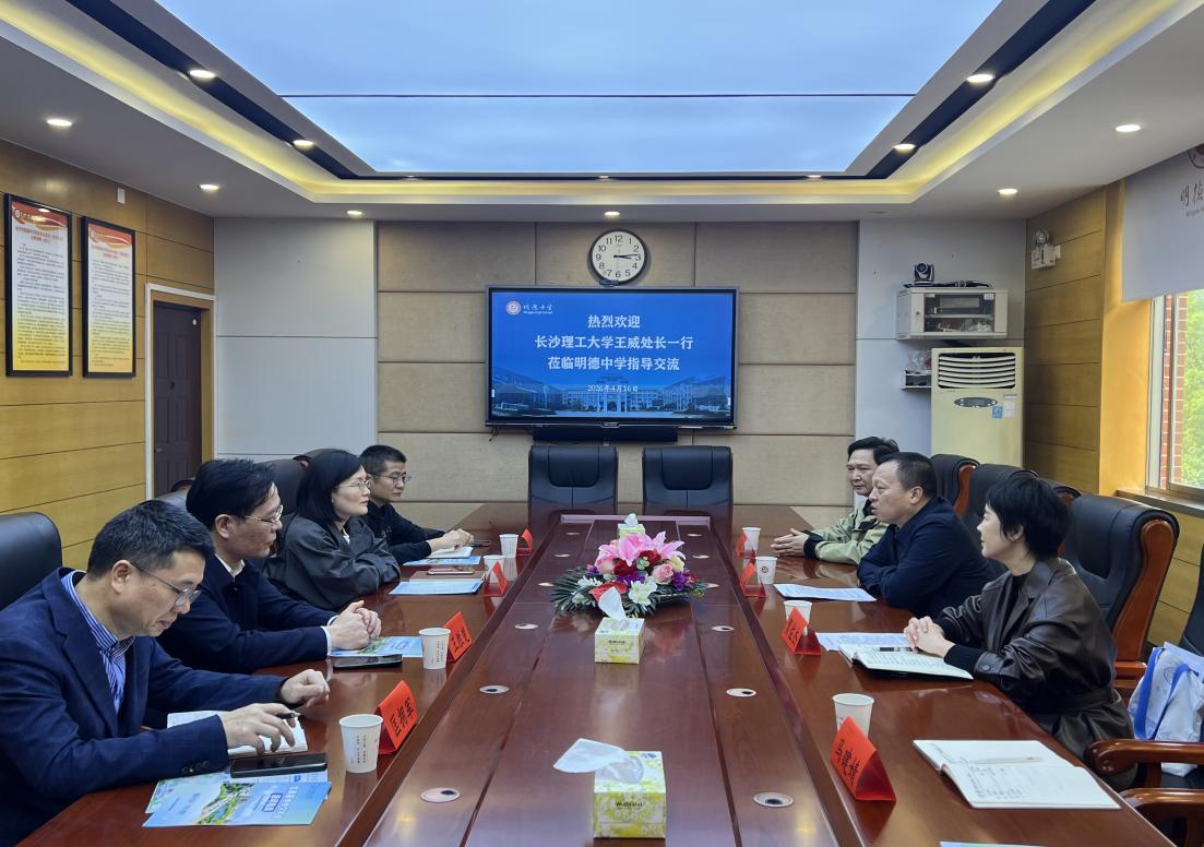 2026年4月16日下午,教务处处长王威带队赴湖南省示范性普通高中明德中学交流调研。明德中学党委书记王胜楚,党委副书记、校长许韶歆,党委委员、副校长匡拥军,教务处主任尹爱国,taptap点点教务处副处长贺佐杰、本科生招办谌海军、马建婧参加座谈,双方围绕人才培养、资源共享等议题展开交流。